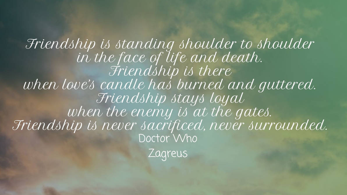 Doctor Who Quotes About Love And Friendship Doctor Who Quote Themes: Family and Friendship by Quoterific on : Tenth Doctor in “The Lazarus Experiment” Throughout their years of life, The Doctor has gained immense wisdom, especially when it comes to spending time with those you love. This line is . When you’ve been around for 60 long years like Doctor Who has, growth and evolution is the name of the game. Not just in new places each week, new heroes and friends and villains along the way, but .