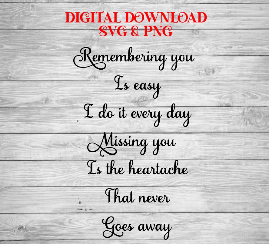 Remembering You is Easy I Do It Every Day Missing You Heartache